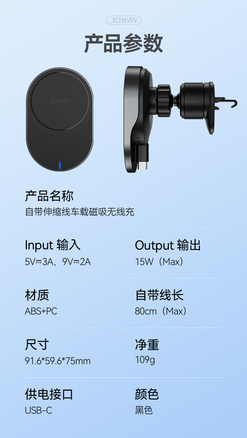 WXC59自带伸缩线车载磁吸无线充
